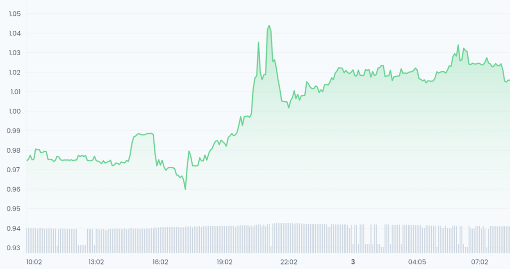 The Argentine Football Association Fan Token is trading at $1.02 today, reflecting a 4.80% increase over the past 24 hours and 6.18% over the last seven days. Its 24-hour trading volume hit $3,130,801, up 10% from the previous day, signaling a surge in activity and demand. With a circulating supply of 8.5 million tokens, $ARG’s market cap now stands at $8.69 million, underscoring its growing relevance among football-focused digital assets.