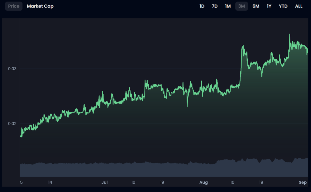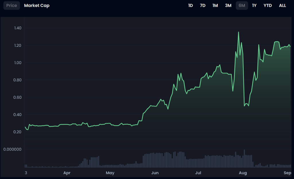 The token then experienced a fallback to the $0.28 range, but then resumed its upward momentum and is currently priced at $0.38. That means overall growth of 58% in the last six months.