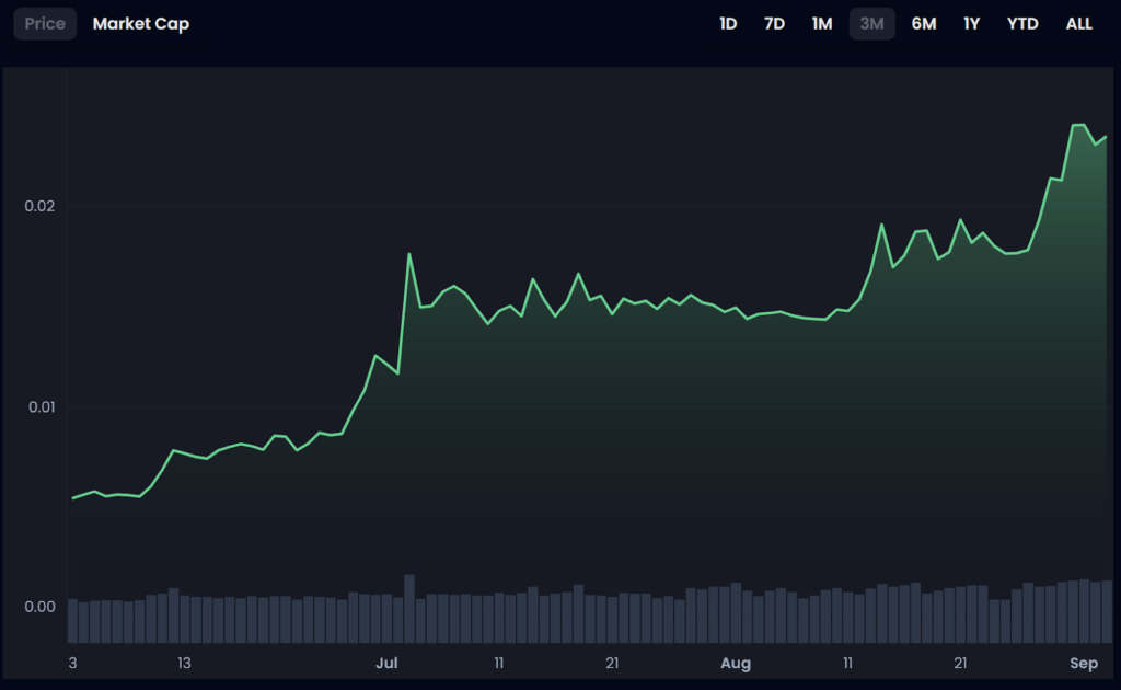 The Peruvian National Football Team Fan Token ($FPFT) saw more volatile movement in the past six months, but zooming into the last three months, we see the $FPFT token has grown 300% in value, while remaining in the sub-cent price range.