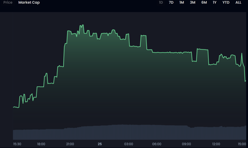 After falling back down to the $0.085 range by Tuesday morning, the token kickstarted its ascension once more, climbing back up to $0.088.