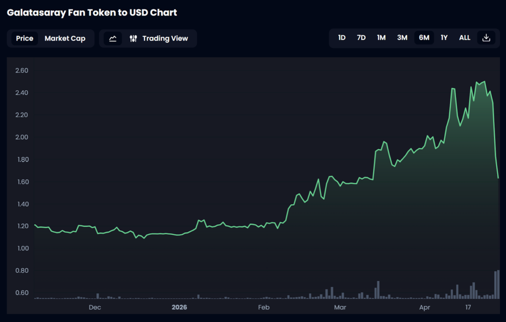 That saw the $GAL valuation climb from $1.09 to $2.50, making the token one of the best performing SportFi assets of the year as traders banked on Galatasaray winning the league for the fourth year running.