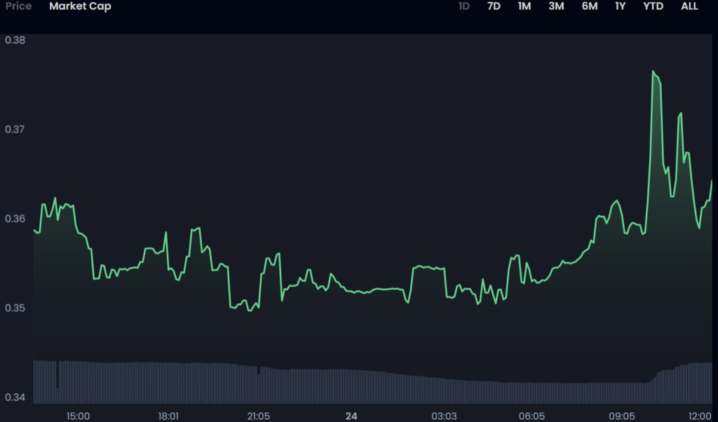 From a daily low of $0.349, the spot price of the Napoli Fan Token ($NAP) climbed as high as $0.376 – amounting to gains of 7.7%.