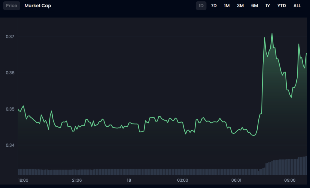 The Fan Token struggled to hold onto its sudden growth, and fell back to the $0.35 mark. Then, the upward momentum kicked in again, sending the token price back up to the $0.36 range.