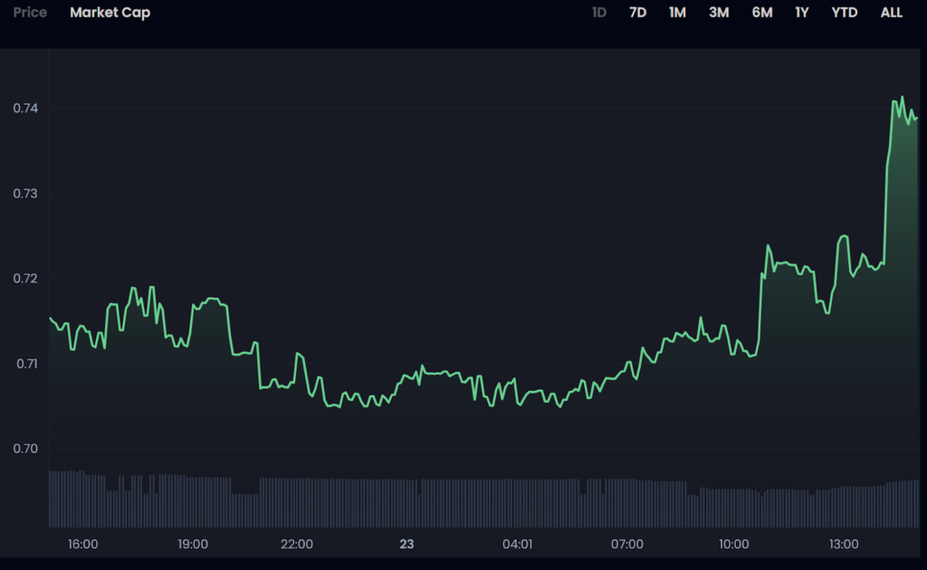 Starting from an early morning low of $0.704, the spot price of the Portugal National Team Fan Token ($POR) rose to $0.736 by time of writing – marking 5% growth in the space of a few hours.