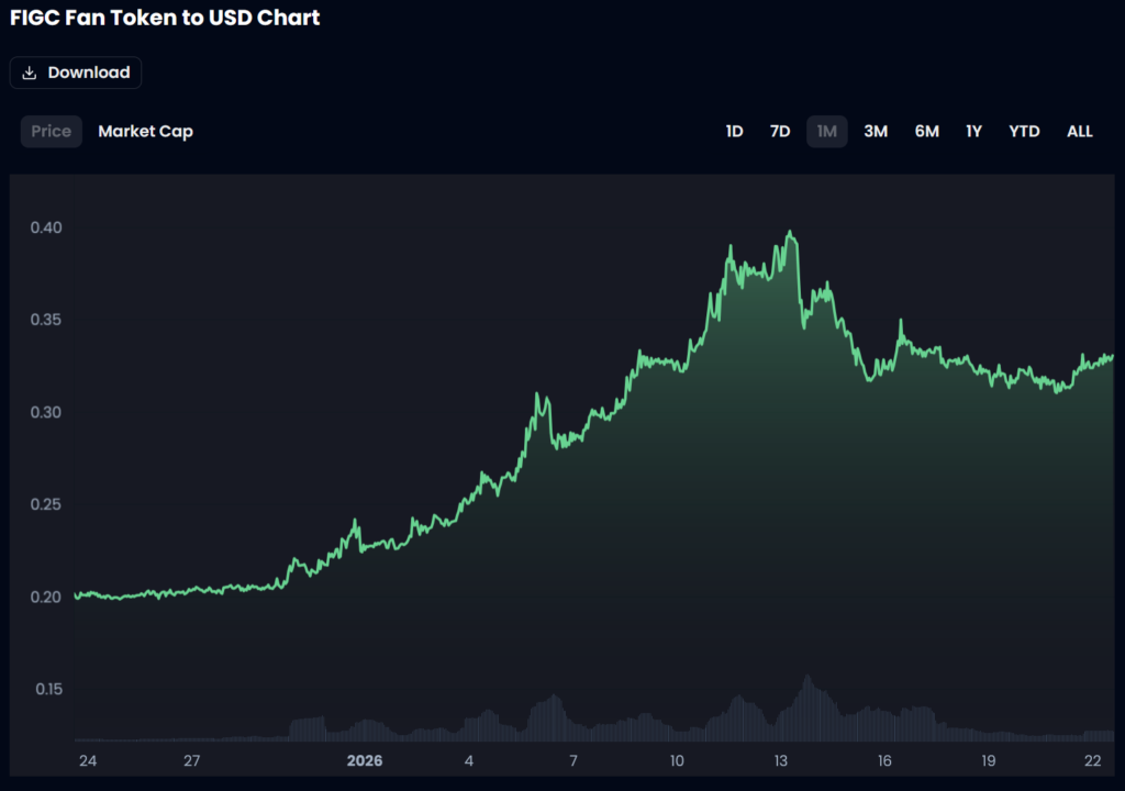 In the past month or so, the valuation of the Italian National Team Fan Token ($ITA) has increased by 69% – climbing from $0.195 up to $0.33.