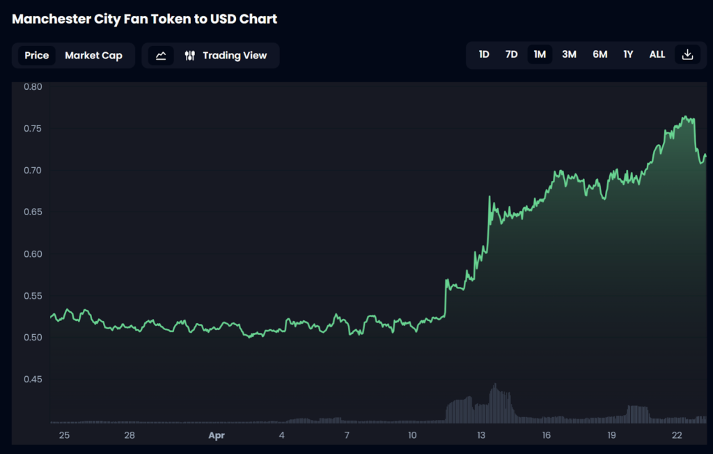 The Manchester City Fan Token ($CITY) has been quietly climbing up the charts since February, in line with the team’s ascension to the summit of the English Premier League.