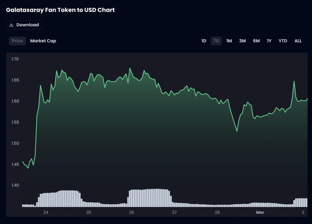 Currently valued at $1.6, making it the third-highest valued Fan Token, $GAL trade volumes have consistently been north of $3m in recent days, following Galatasaray’s 3-1 win over Alanyaspor on Saturday, a result that gives them a four-point cushion at the summit of the Turkish Süper Lig.