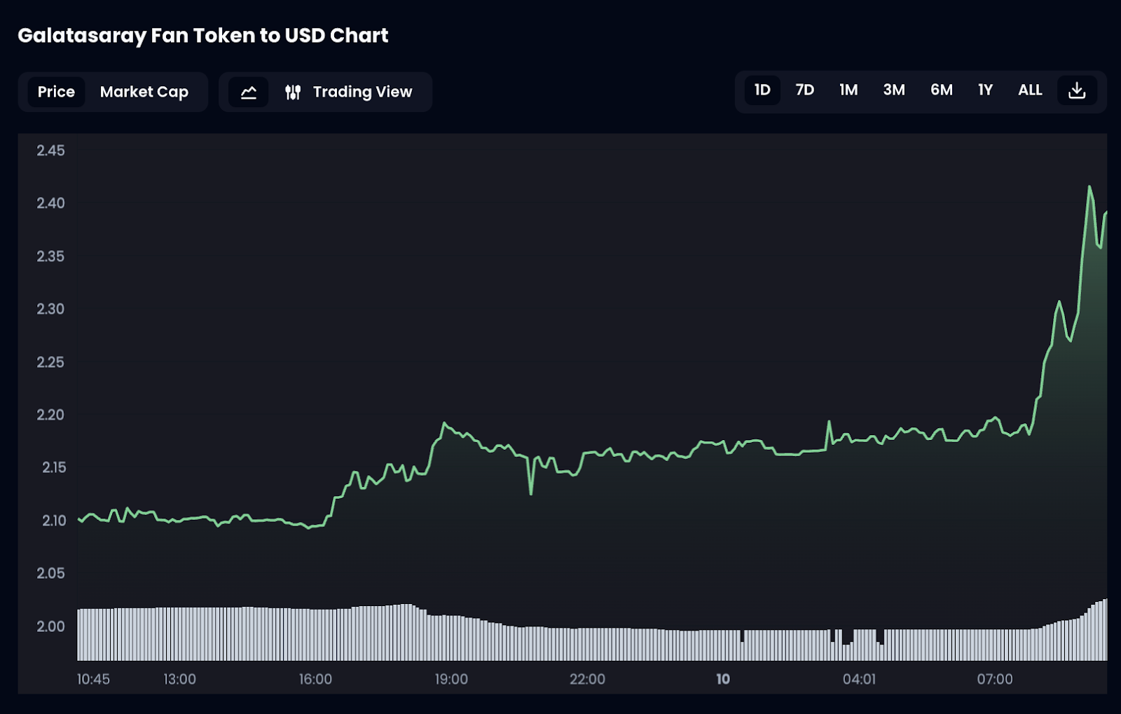 The Galatasaray Fan Token ($GAL) has been one of the best-performing Fan Tokens over the last seven days, its value jumping 16.2%.