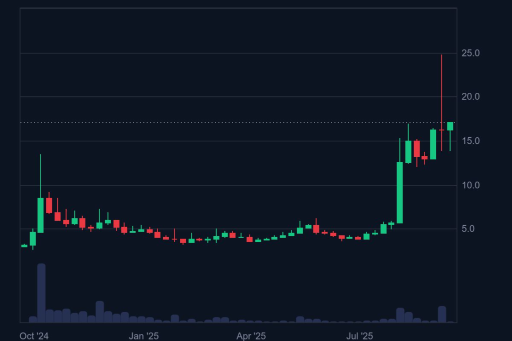 Os números são claros: o $OG atingiu um recorde histórico de US$24,77 em 10 de setembro de 2025. A atividade diária também disparou, com US$51.135.168 negociados em 24 horas (+109,20% em relação ao dia anterior). Previsões indicam que o token pode fechar o ano entre US$44,67 e US$49,13, o que significaria lucros potenciais de +187,49% para os holders atuais.